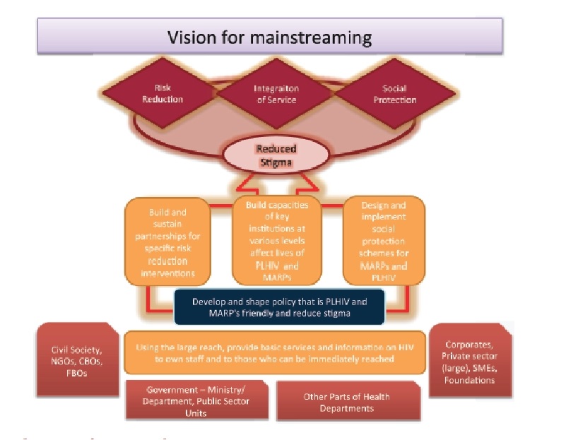 Mainstreaming approach gained ground with the realization that the non-health sector can play an important and meaningful role in reducing vulnerability to HIV and mitigate impact of HIV on those infected and affected. It is important to note that mainstreaming does not replace the need for traditional approaches of prevention, care, support and treatment for People Living with HIV; it may instead complement and strengthen the same.